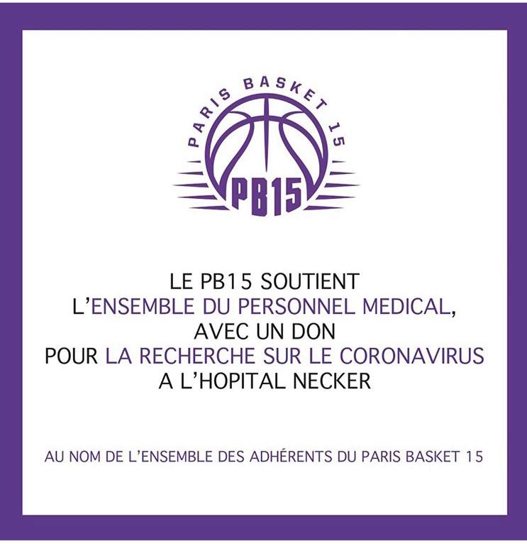 C’est pourquoi le Paris Basket 15 a décidé, en notre nom à tous, de faire un don pour la recherche à destination des équipes de l’hôpital Necker. Ce geste est en adéquation avec les valeurs que nous prônons au sein de notre association.